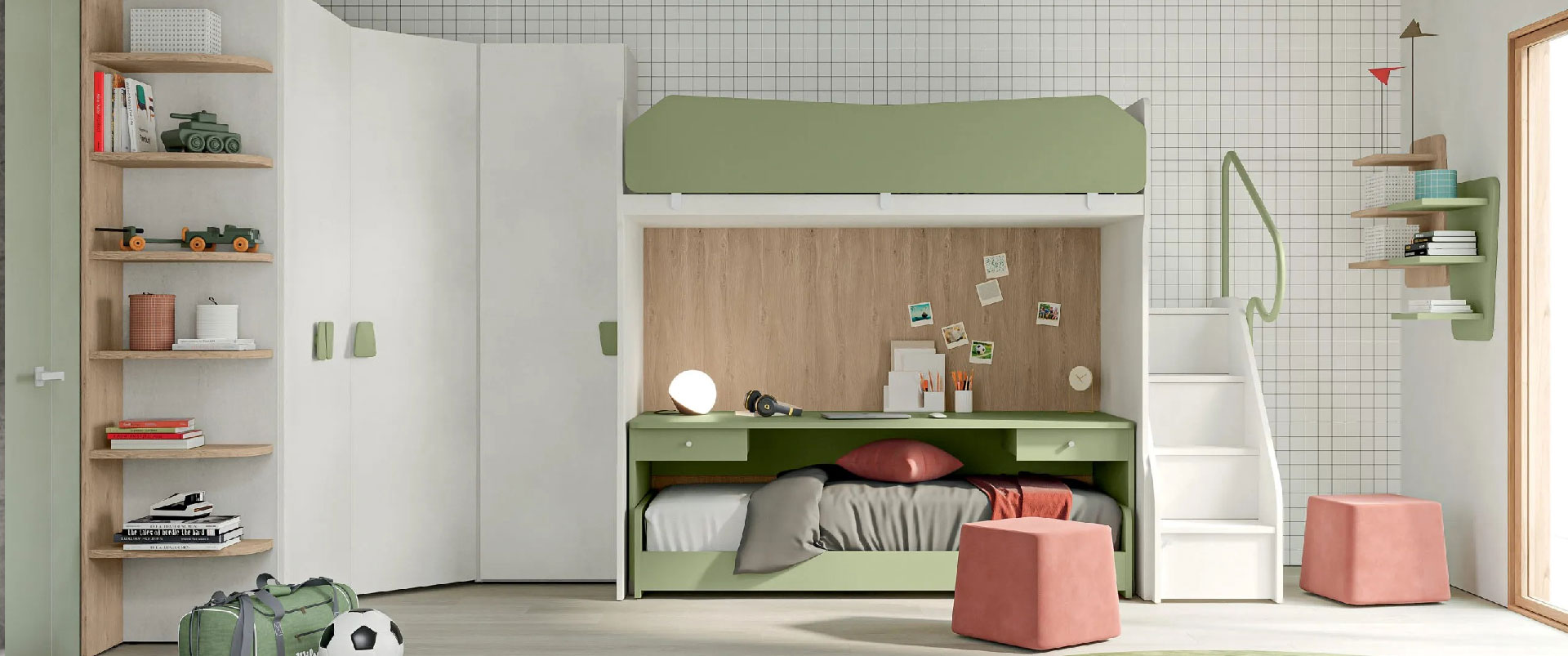 Decorare perfettamente le camerette con progetti articolati e polifunzionali. Svariate soluzioni moderne per trasformare la cameretta in un ambiente dove i piccoli avranno la possibilità di diventare grandi e riposare.