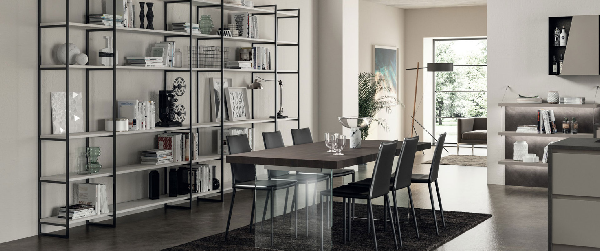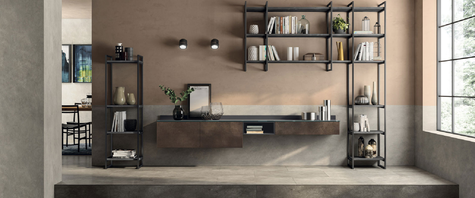 3 / 7 - Zona living costruita con il Sistema Parete “Metro”, soluzione versatile di ispirazione industrial, perfetto per ogni utilizzo.