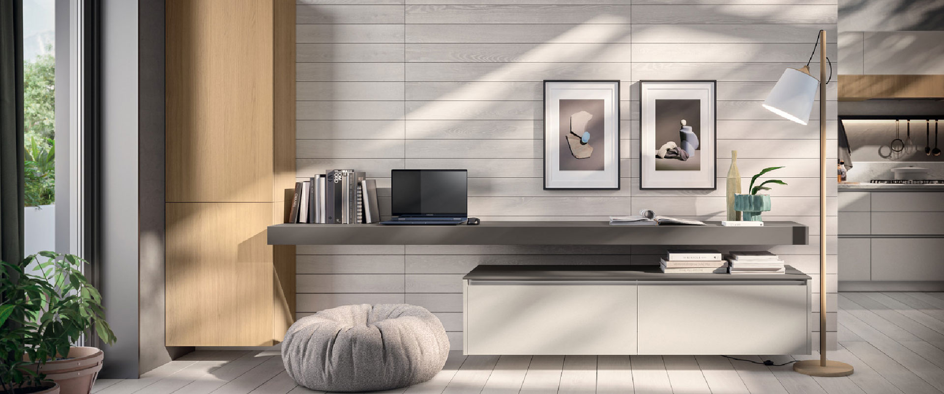 Pensata per chi ama circondarsi di arredi dalla spiccata personalità, la nostra ricerca stilistica ha portato all’introduzione di nuove finiture, disponibili in tre nuance dall’effetto perlato che, oltre ad ampliare la gamma dei laccati (lucidi e opachi), vengono proposte anche in una caratteristica versione dogata verticale.