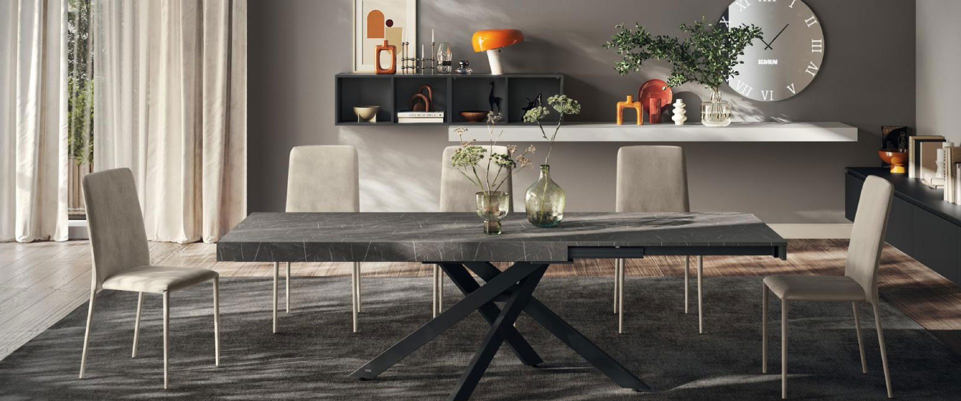 Rettangolare, rotondo, consolle, fisso o allungabile non esiste spazio a cui questo tavolo non possa adattarsi.